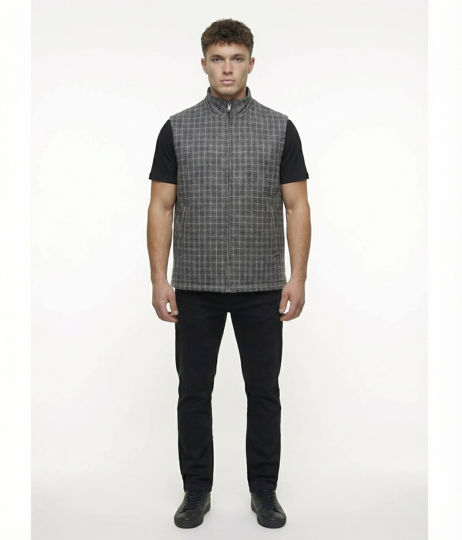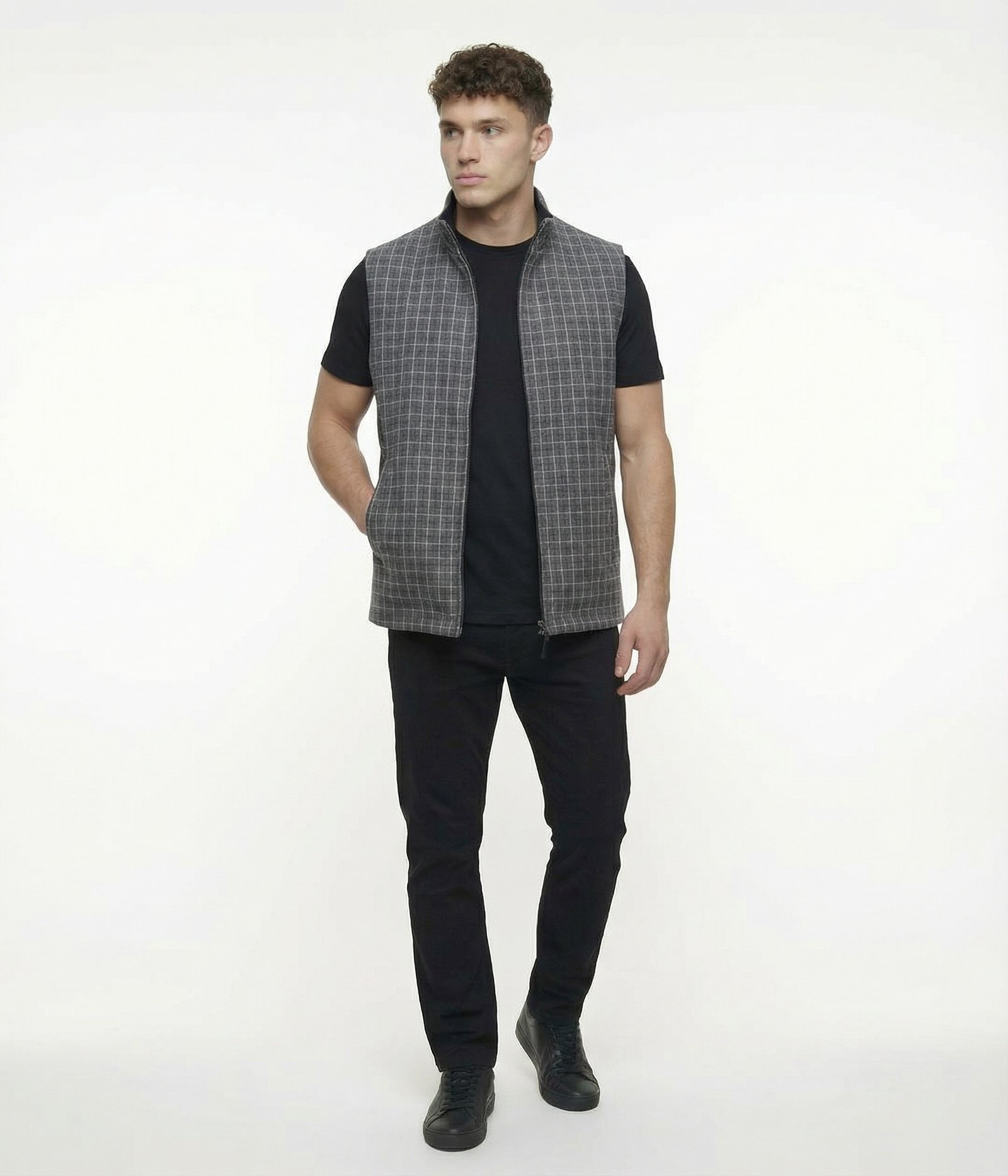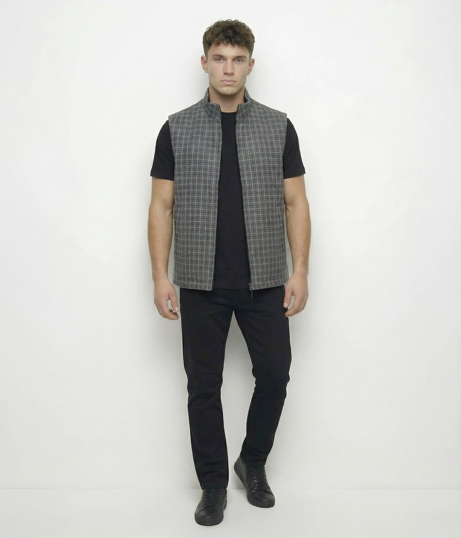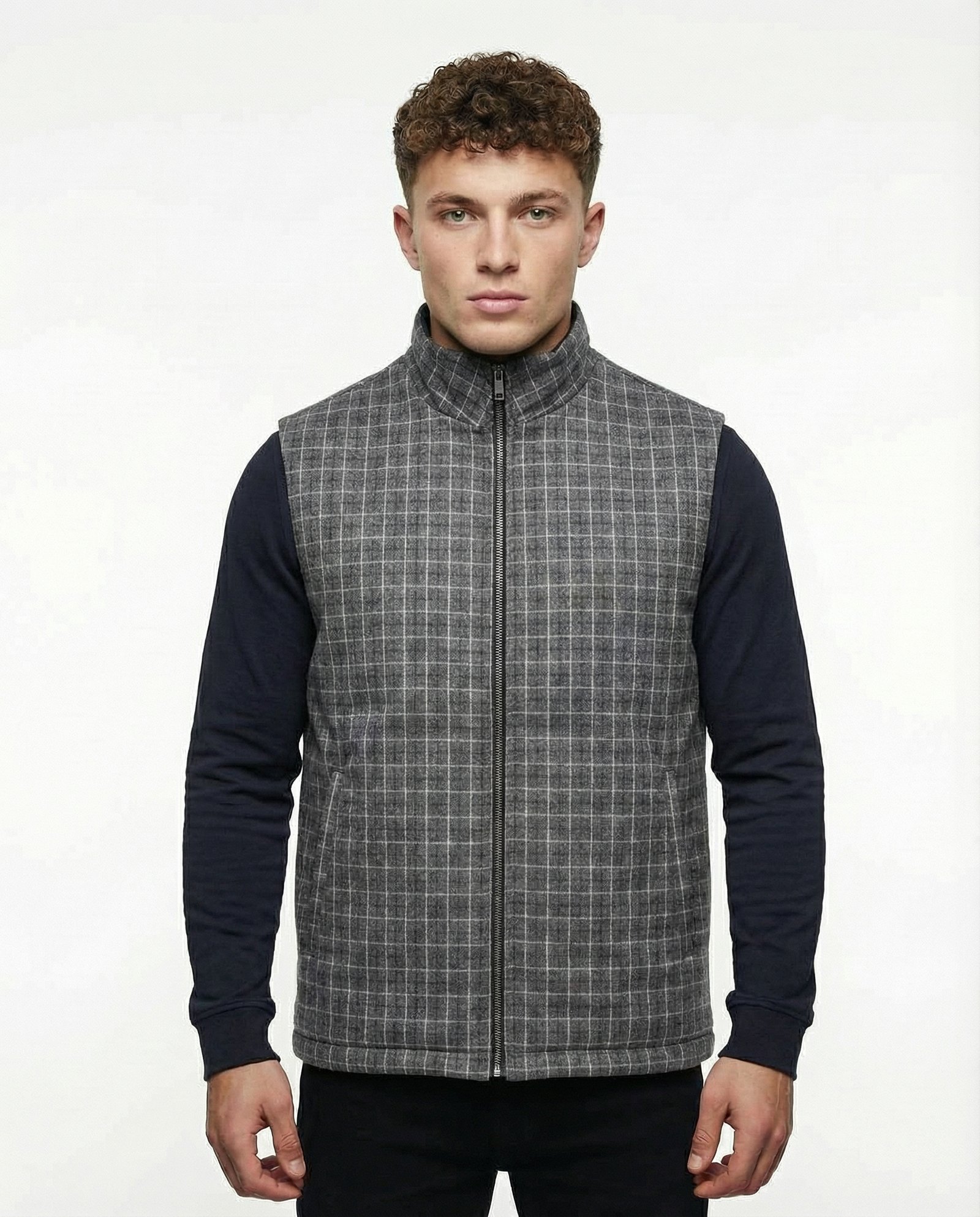Men’s winter jacket with stand collar and zip closure – sleeveless coat, colors